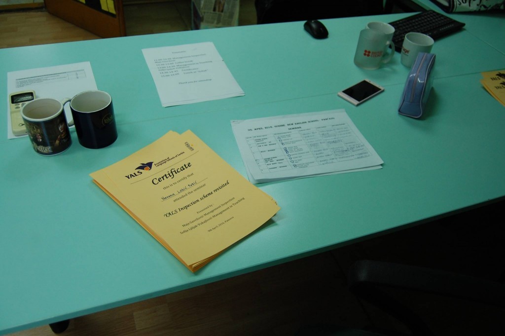 9.04.2016. realizovan je 13. po redu YALS-ov interni seminar na temu „Standardizacija inspekcijske šeme škola YALS-a“, sa posebnim osvrtom na akademski aspekt rukovođenja školom stranih jezika. Maja Gavrilović Maksimović iz škole Livingston i Sofija Ljiljak-Vukajlović iz škole Tom i Ema održale su dve radionice, „Inspekcija akademskog menadžmenta“ i „Menadžment u nastavi“ uz svesrdnu podršku svojih kolega i koleginica iz ostalih škola članica našeg udruženja. Domaćin seminara je ovaj put bila škola New English School u Pančevu koja je tom prilikom obeležila 20 godina rada.