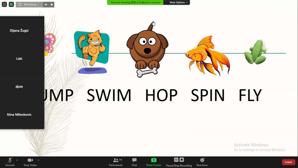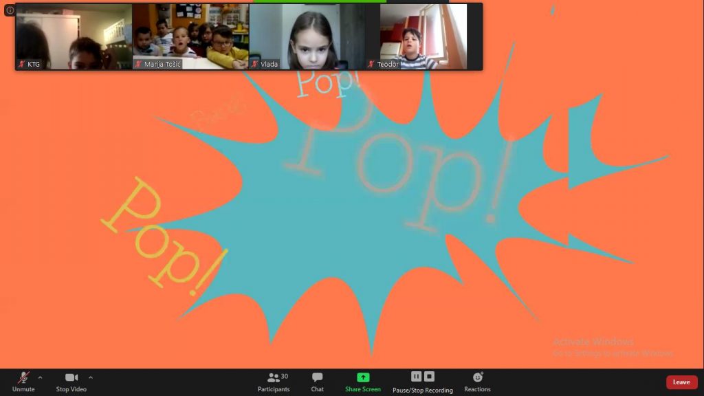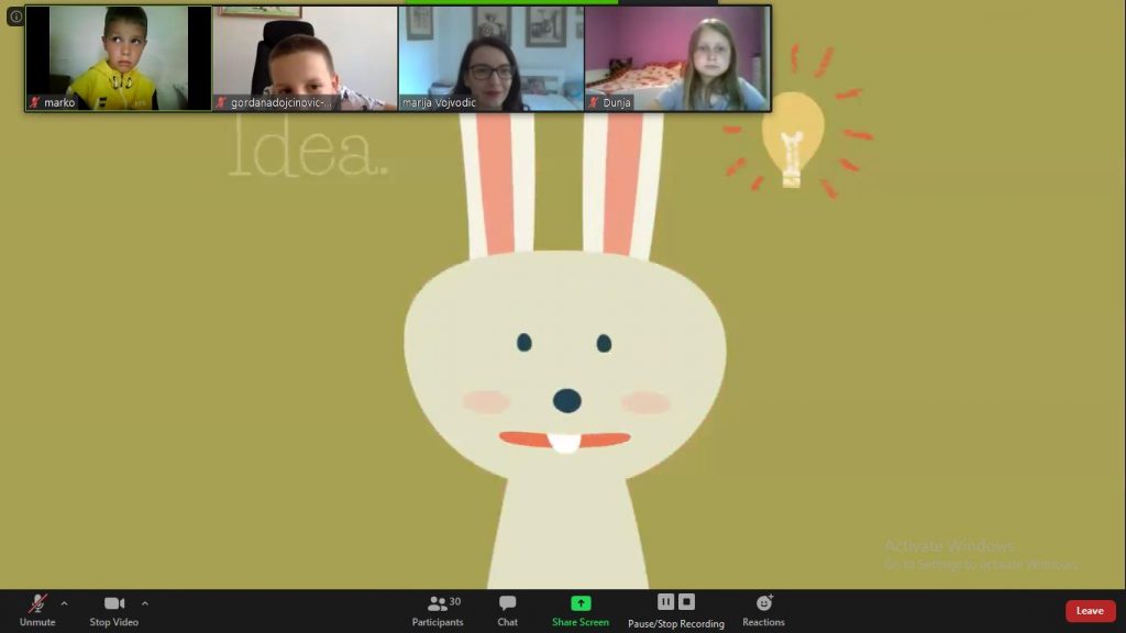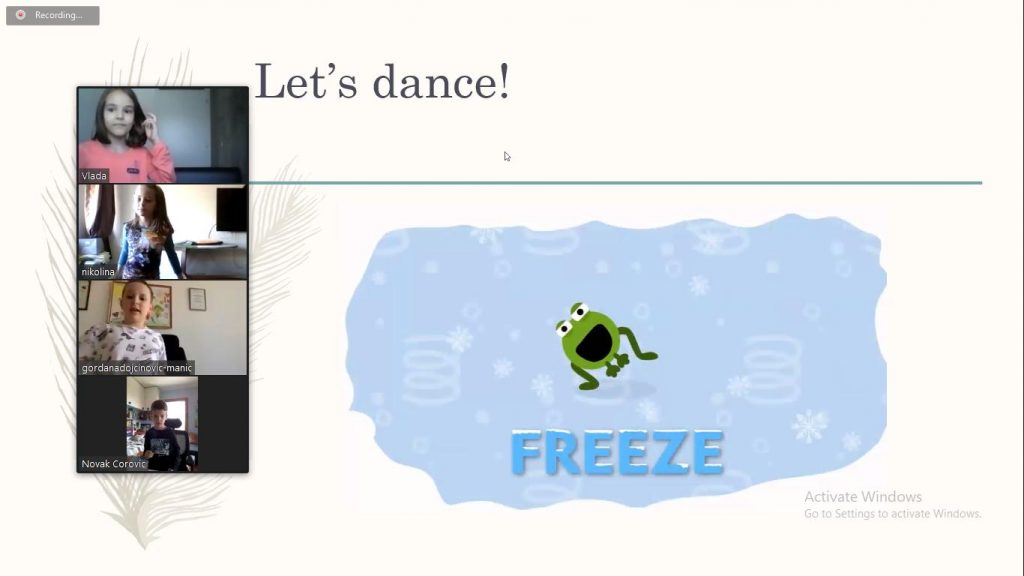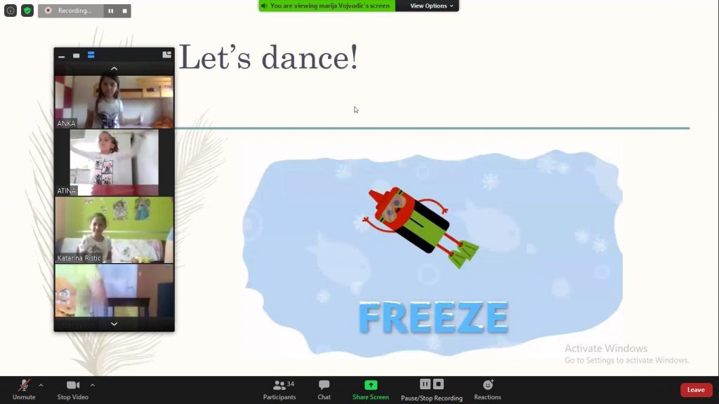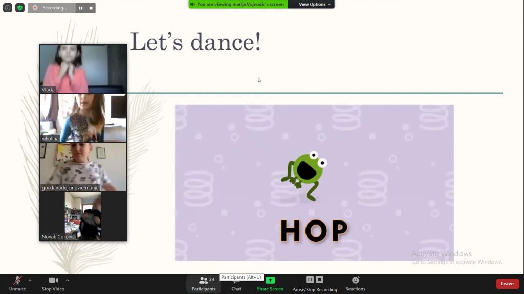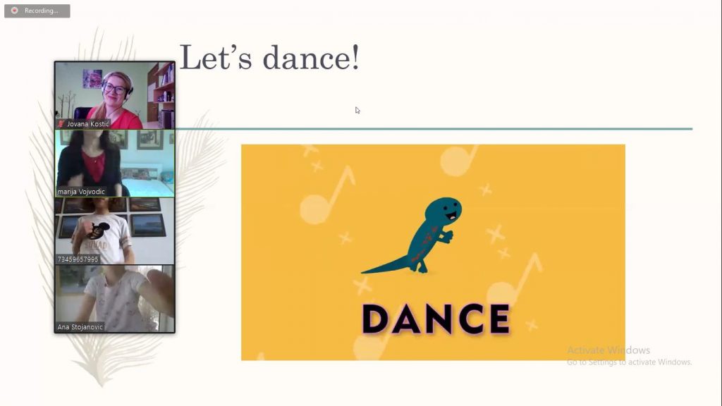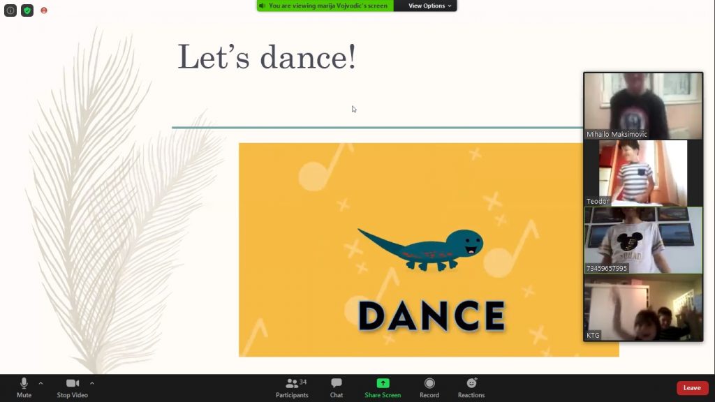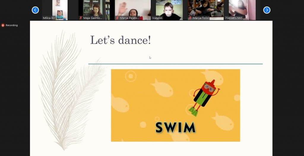 Teachers Milica Gojkovic and Marija Vojvodic, with the wholehearted technical and logistical support of Jovana Kostic, guided the students through dance, story and various language and logical activities.