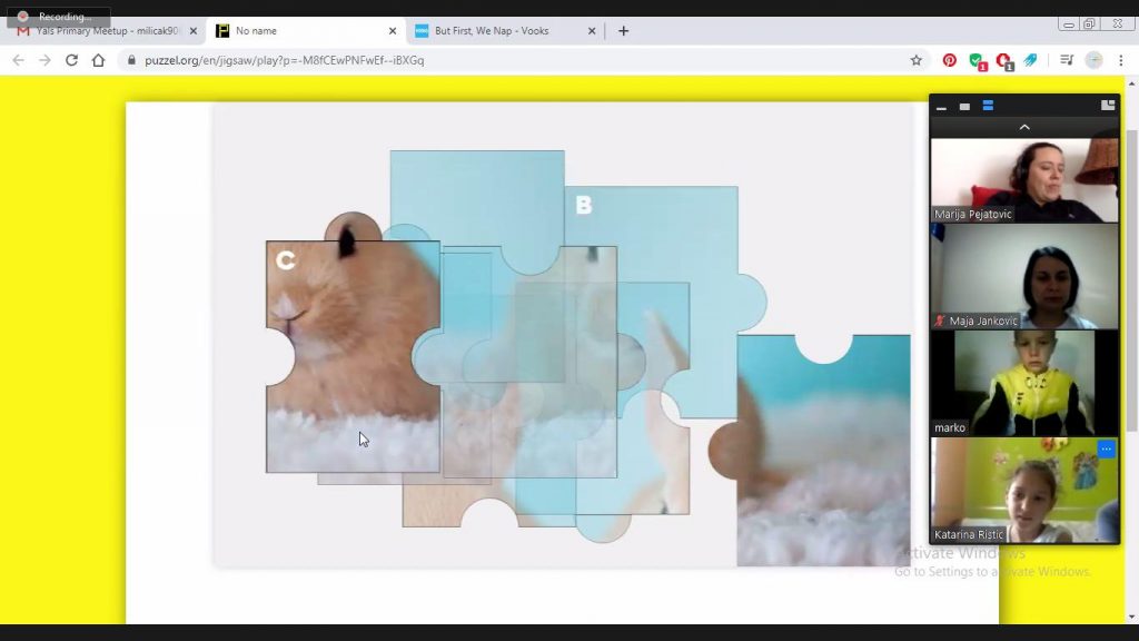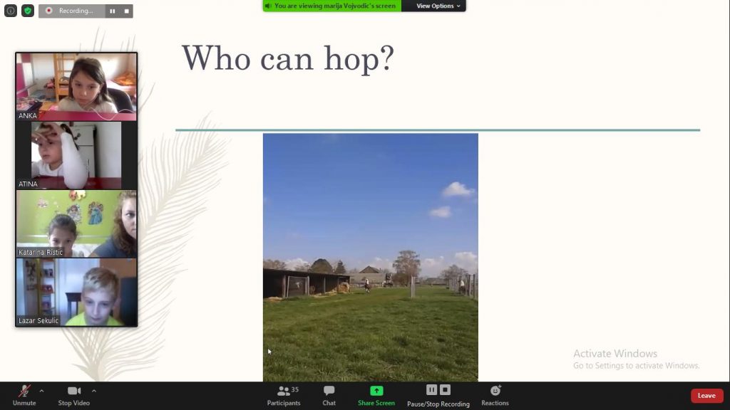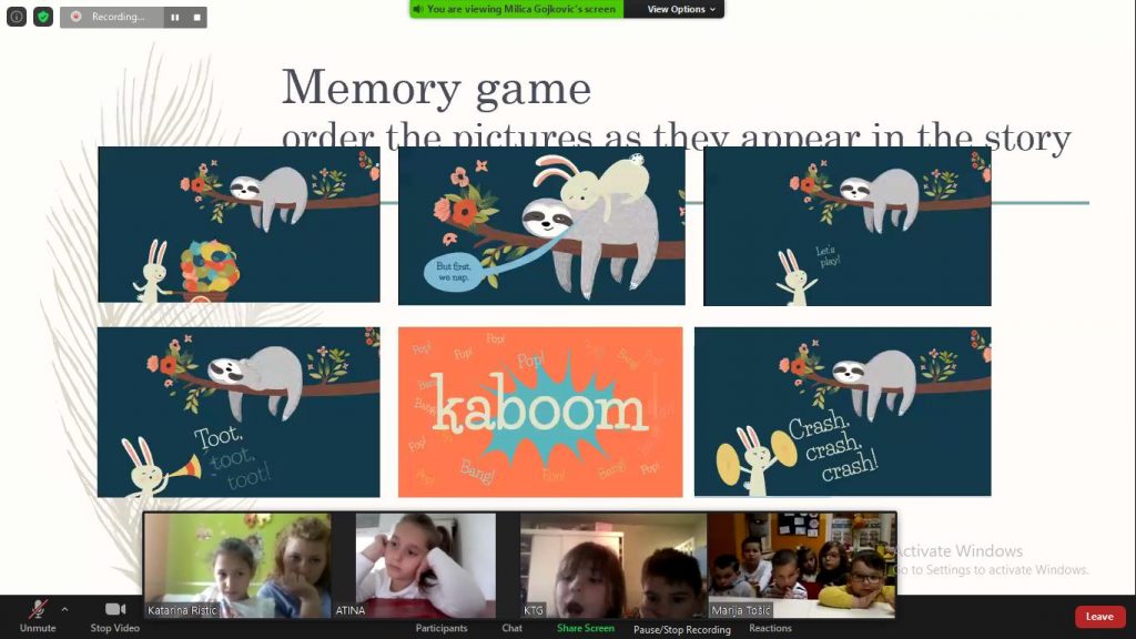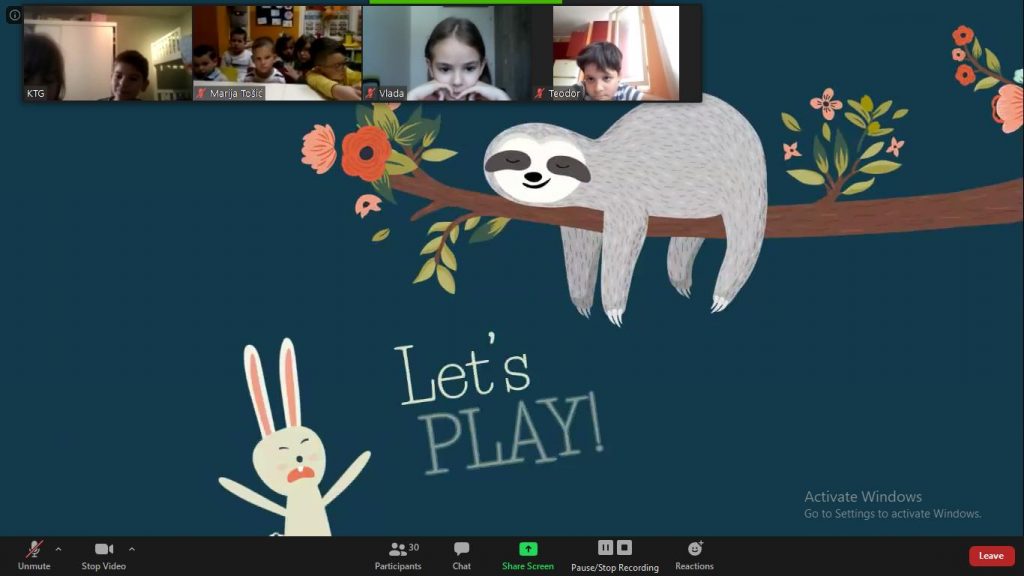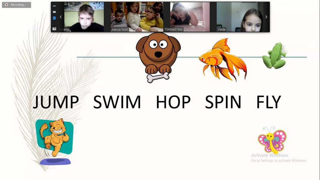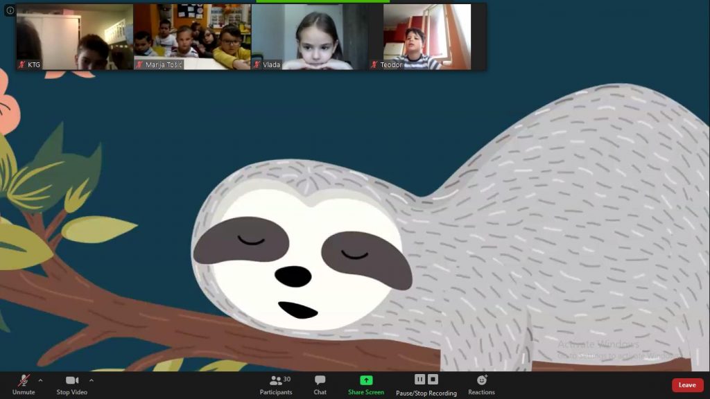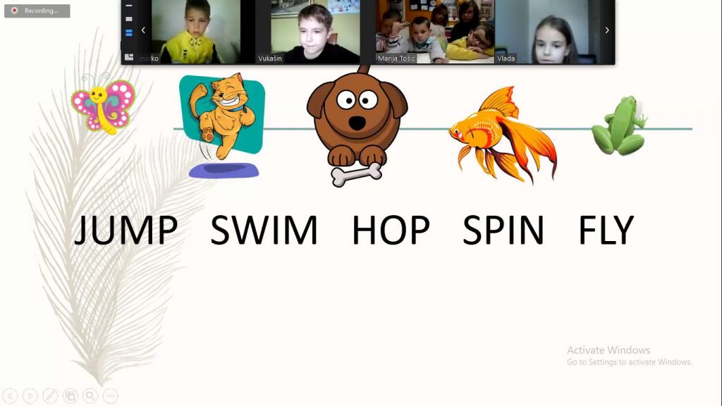 In a somewhat noisy, but most certainly active work environment, the primary students had an opportunity to show off their knowledge of action verbs and animals, their spelling (even reading) and acting skills, but also to learn at least a few new words watching a funny story about a sloth and a rabbit.
