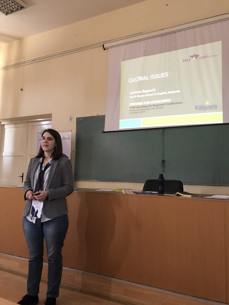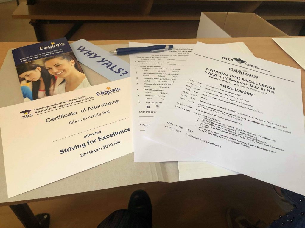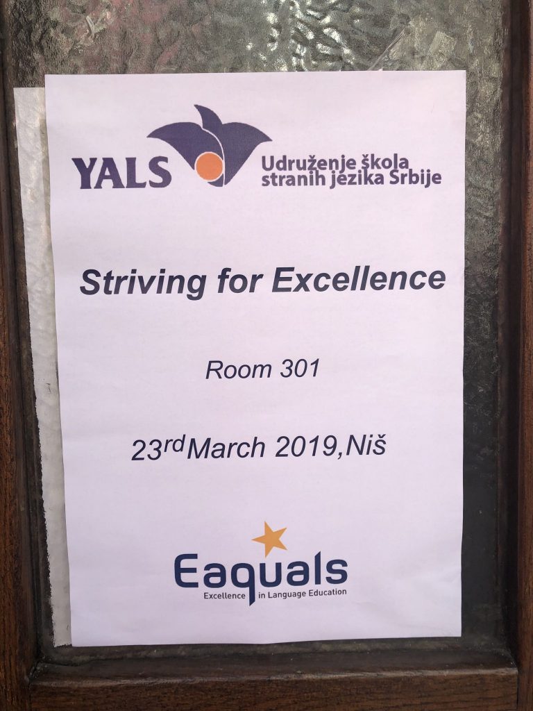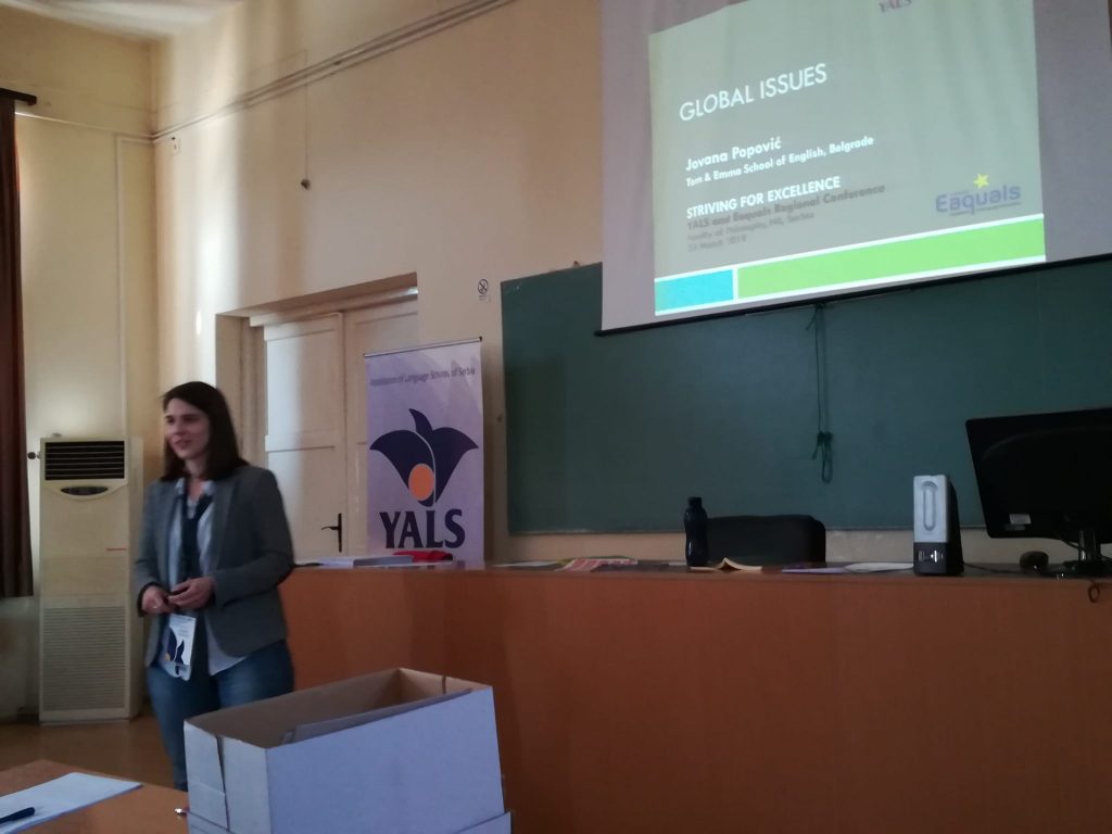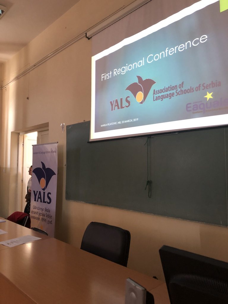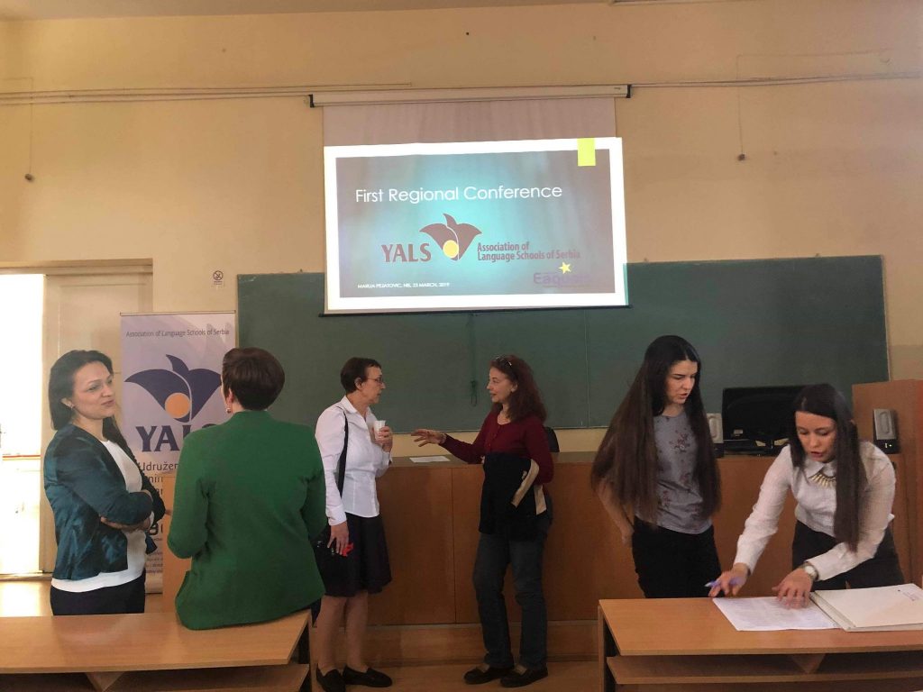The First Regional Conference of YALS Association of Language Schools of Serbia, titled YALS and Eaquals Day: Striving for Excellence was held on 23 March 2019 at the Faculty of Philosophy in Niš. The conference was supported by the Eaquals Member Event Fund 2019 for local and regional events and a special emphasis was placed on networking and professional cooperation with the partner associations from the region – MAQS, Macedonian Association for Quality Language Services, which was represented at the conference by Buzalkovska Vesna and Tanevska Elisaveta, and Optima, The Bulgarian Association of Quality Language Services, represented by Ananieva Yordanka, Kermendjeva-Dimirova Nikolina and Kermendjeva Teodora. This event was also supported by the Faculty of Philosophy of Niš University, represented by Nina Lazarević, Assistant Professor at the Department of English.