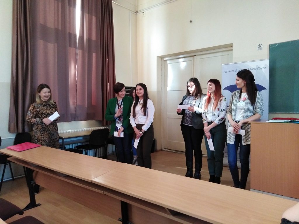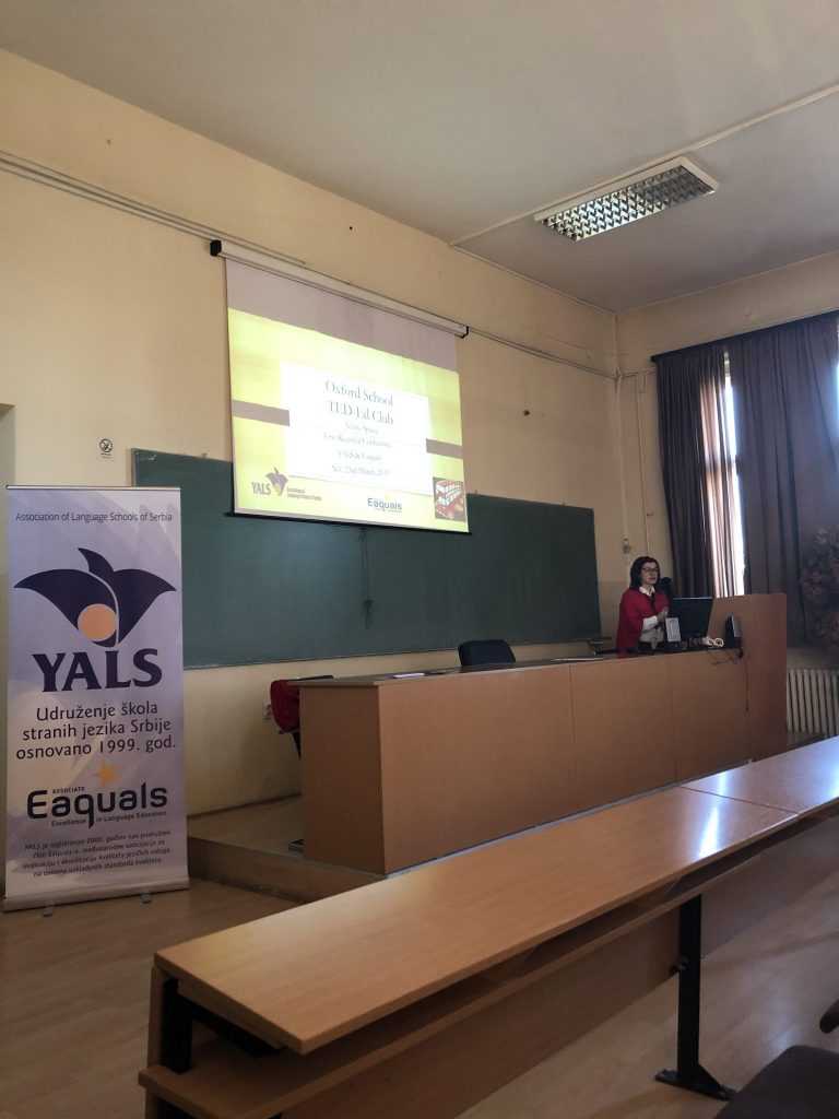 The overall theme of the conference were (extra)curricular activities aimed at increasing students’ and teachers’ motivation. The conference was opened by YALS Chair Marija Pejatović, who introduced the values and principles that YALS members stand for and cooperation with Eaquals, after which she gave a short overview of past YALS activites. This was followed by presentations of 11 teachers from 5 YALS schools – Ivan Petrić, Tijana Rakonjac and Vera Purić from Blackbird School, Čačak, Danijela Beljić and Lora Petronić Petrović from Lingva School, Valjevo, Jelena Spasić from Oxford School, Leskovac, Marina Stošić, Katarina Kostić and Anđelija Ognjanović from Penguin School, Jagodina, and Jovana Popović and Sofija LJijljak-Vukajlović from Tom & Emma School, Belgrade.