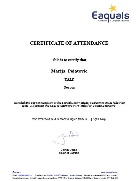 The spring Eaquals conference in 2019 was held in Madrid, Spain 11-13 April and was attended by three representatives from YALS schools: Sofija Ljiljak-Vukajlović from Tom & Emma School in Belgrade and Marija Pejatović and Jelena Spasić from Oxford School in Leskovac. We are proud to say that two representatives had the pleasure and honour to deliver their presentations for the first time at an Eaquals professional event.